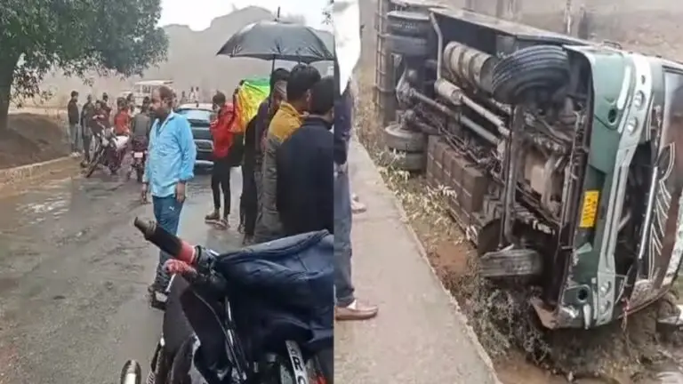 तेज रफ्तार का कहर: पुल से नीचे गिरी बस, बड़ा हादसा होने से बचा!