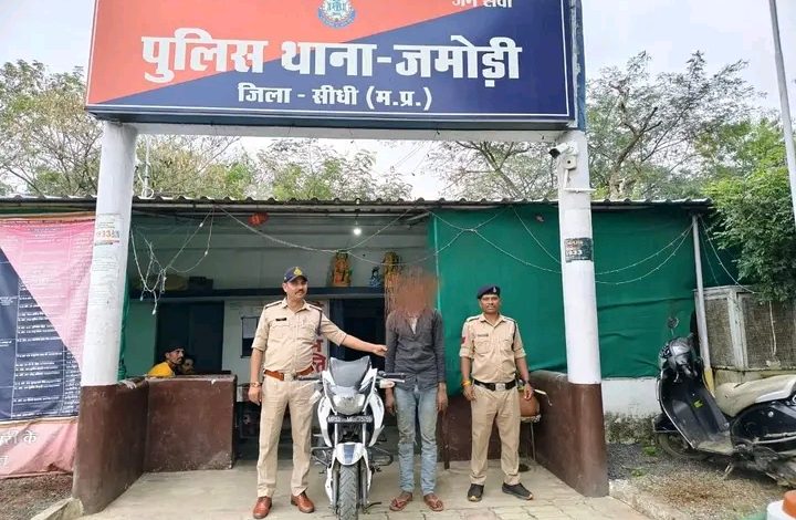 सीधी। पुलिस अधीक्षक श्री संतोष कोरी के कुशल निर्देशन, अतिरिक्त पुलिस अधीक्षक श्री अरविंद श्रीवास्तव एवं उप पुलिस अधीक्षक (मुख्यालय) श्री अमन मिश्रा के मार्गदर्शन तथा थाना प्रभारी जमोड़ी उप निरीक्षक दिव्य प्रकाश त्रिपाठी के नेतृत्व में थाना जमोड़ी पुलिस ने घर में घुसकर मोटरसाइकिल एवं नगदी चोरी करने वाले आरोपी को गिरफ्तार किया।