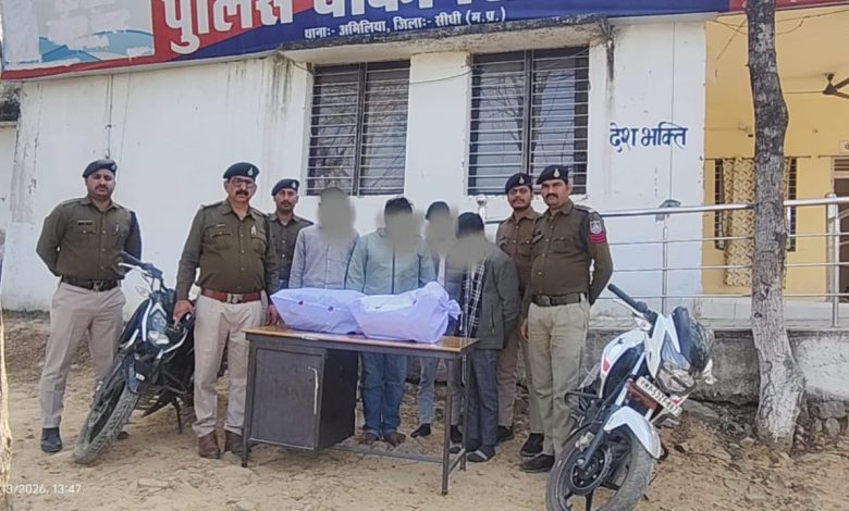 अमिलिया (सीधी)।अमिलिया थाना क्षेत्र अंतर्गत सिहावल चौकी पुलिस ने अवैध मादक पदार्थ के खिलाफ बड़ी कार्रवाई करते हुए 8 किलो 137 ग्राम गांजा जब्त किया है। पुलिस ने मौके से चार आरोपियों को गिरफ्तार कर कुल 3 लाख 80 हजार रुपये का मसरूका बरामद किया है।
