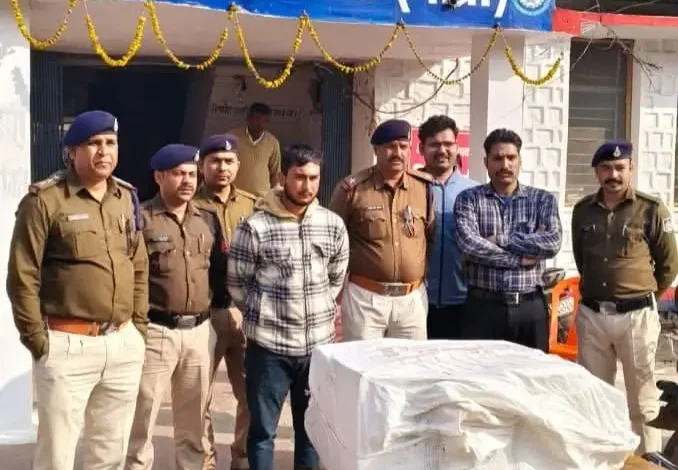 दिनाँक 04.01.25 को थाना कोतवाली पुलिस को मुखविर सूचना मिली कि लकी मिश्रा निवासी कठास हाल ऊची हवेली मडरिया जो बाईपास में बाबी सितानी के सिमेंट की दुकान में काम करता है। दुकान बंद होने के बाद बादल साहू के साथ मिलकर रात्रि में सिमेंट दुकान के पीछे अवैध रूप से मादक पदार्थ नशीली कफ सिरप का भण्डारण करके विक्रय कर देते है। थाना प्रभारी कोतवाली द्वारा मुखविर सूचना से वरिष्ट अधिकारियों को अवगत कराया जाकर रेड़ कार्यवाही हेतु एक टीम गठित कर मुखबिर के बताये अनुसार स्थान बाबी सितानी के सिमेंट के दुकान के पास पहुचे तो दुकान के सामने गेट के पास एक लड़का मिला जिसका नाम पता पूछने पर अपना नाम लकी उर्फ अभिमन्यू मिश्रा पिता नारेन्द्र मिश्रा उम्र 19 वर्ष निवासी कठास हाल ऊची हवेली का होना बताया तथा बाबी सितानी के सिमेंट के दुकान का कर्मचारी होना बताया जिसे मुखविर सूचना से अवगत कराया जाकर दुकान के पीछे की तलाशी ली गई तो सीढ़ियों के नीचे 07 पेटी ऑनरेक्स कफ सिरप मिली जिसे समक्ष गवाहों के खोलकर चेक किया गया जिसमे 840 शीशी नशीली कफ सिरप कीमती 1 लाख 26 हजार रूपये पाया गया जिसके संबंध में पूछतांछ करने पर स्वयं एवं बादल साहू का माल होना स्वीकार किया जो उक्त संदेही से अवैध नशीली कफ सिरफ बिक्री करने के संबंध मे वैध दस्तावेज की माग की गई जो कोई भी दस्तावेज प्रस्तुत नही किया। आरोपी से उक्त अबैध नशीली आनरेक्स कफ शीरप 840 नग कीमती 1 लाख 26 हजार रूपये एवं परिवहन में प्रयुक्त मोटर सायकल कीमती 74 हजार कुल कीमती 2 लाख की जप्ती की जाकर आरोपियों का उक्त कृत्य धारा 5/13 म.प्र. ड्रग्स कंट्रोल अधि. एवं 8/21, 22 एनडीपीएस एक्ट के तहत दण्डनीय पाये जाने पर अपराध कायम कर आरोपी लकी उर्फ अभिमन्यू मिश्रा पिता नारेन्द्र मिश्रा उम्र 19 वर्ष निवासी कठास हाल ऊची हवेली थाना कोतवाली सीधी को गिरफ्तार कर प्रकरण को विवेचना में लिया गया है।