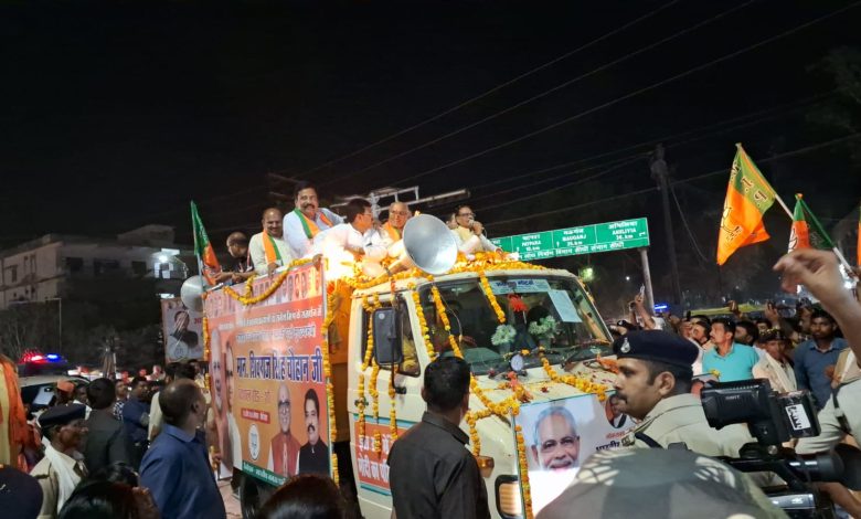 भाजपा प्रत्याशी डॉ राजेश मिश्रा, पूर्व मुख्यमंत्री शिवराज सिंह चौहान, भाजपा जिला अध्यक्ष देव कुमार सिंह चौहान, मध्य प्रदेश भाजपा के प्रदेश महामंत्री और चुरहट के पूर्व विधायक शरदेन्दु तिवारी, सीधी विधायक श्रीमती रीती पाठक, सिहावल विधायक विश्वामित्र पाठक,धौहनी विधायक कुंवर सिंह टेकाम, लोकसभा संयोजक के के तिवारी ने दोनों हाथ जोड़कर रथ में सवार होकर जनता जनार्दन का अभिनंदन स्वीकार करते हुए जनता जनार्दन का आशीर्वाद ग्रहण करते हुए और पुष्प वर्षा के साथ ही विशाल शोभायात्रा रोड शो पुरानी गल्ला मंडी, लालता चौक, गांधी चौक, पूजा पार्क, अस्पताल चौराहा होते हुए स्थानीय सम्राट चौराहे में विशाल नुक्कड़ सभा के रूप में रोड शो परिणत हो गया ।