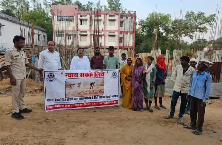 विधिक जागरूकता शिविर: अंतर्राष्ट्रीय श्रम दिवस के अवसर पर 01 मई 2025 को सीधी जिले में आयोजित किया गया। इस शिविर का उद्देश्य असंगठित क्षेत्र के श्रमिकों को उनके कानूनी अधिकारों और लाभकारी योजनाओं की जानकारी देना था। यह कार्यक्रम राष्ट्रीय विधिक सेवा प्राधिकरण, राज्य विधिक सेवा प्राधिकरण और जिला विधिक सेवा प्राधिकरण के संयुक्त निर्देशों के अंतर्गत हुआ, जिसकी अगुवाई प्रधान जिला न्यायाधीश श्री प्रयाग लाल दिनकर ने की।