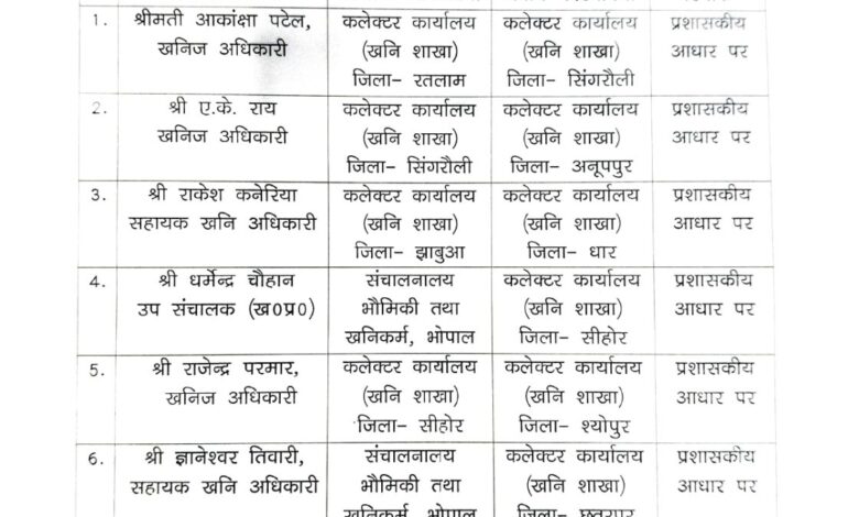 MP खनिज विभाग में बड़े स्तर पर तबादले, देखें पूरी सूची…