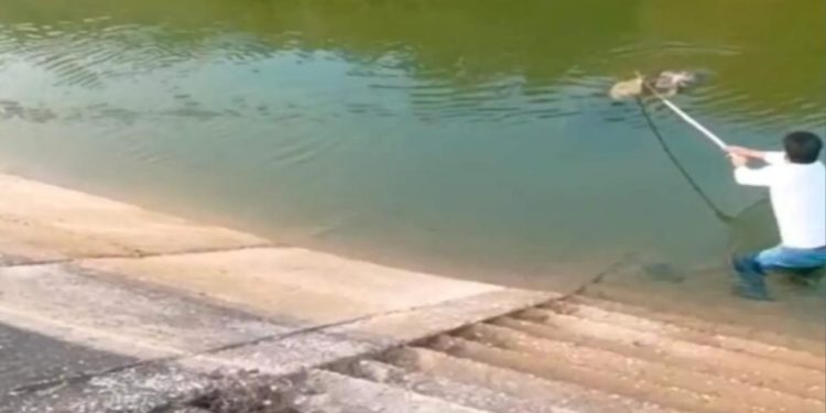 12 फीट गहरे पानी में उतरकर ग्रामीणों ने दिखाया साहस