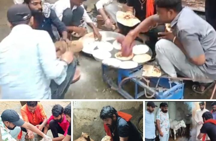 सावन के पावन माह के चौथे सोमवार दिनांक 4/8/25 को नगर के कांजी हाउस वार्ड छः में शिवसेना वा गौसेवक साथियों एक विशेष भंडारे का आयोजन किया गया।जहा रोटी गुड़ का भोग लगा कर गौ वंशो को खिलाया