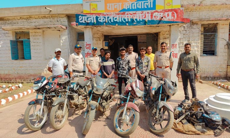 सीधी । पुलिस अधीक्षक श्री मुकेश कुमार श्रीवास्तव के कुशल निर्देशन तथा अतिरिक्त पुलिस अधीक्षक सुश्री अंजुलता पटले एवं उप पुलिस अधीक्षक मुख्यलय एन एस कुमरे के मार्गदर्शन व थाना प्रभारी कोतवाली उप निरीक्षक योगेश मिश्रा के कुशल नेतृत्व में कोतवाली पुलिस ने मोटरसाइकिल चोरी करने वाले *आरोपी*