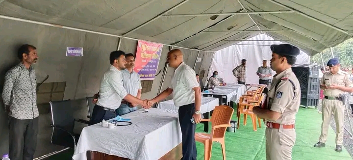 शिविर के दौरान पुलिस अधीक्षक श्री संतोष कोरी ने स्वास्थ्य परीक्षण शिविर स्थल का भ्रमण कर चिकित्सकों एवं स्वास्थ्यकर्मियों से संवाद किया।