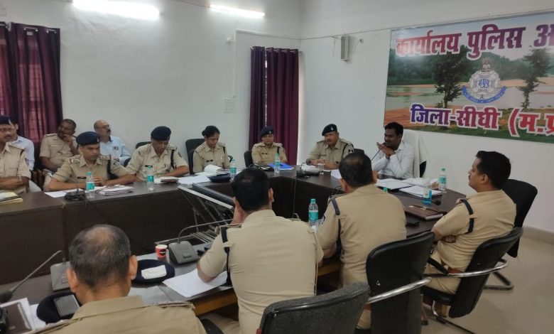 सीधी । दिनांक 17/09/2023 को पुलिस अधीक्षक कार्यालय स्थित सभागार में जिले की कानून व्यवस्था की स्थिति एवं आगामी विधानसभा चुनाव की तैयारियो को जानने के लिये पुलिस अधीक्षक सीधी डॉ. रविन्द्र वर्मा द्वारा मासिक अपराध गोष्ठी का आयोजन किया गया। गोष्ठी में अतिरिक्त पुलिस अधीक्षक सीधी श्री अरविंद श्रीवास्तव, उप पुलिस अधीक्षक मुख्यालय सीधी श्रीमती प्रिया सिंह, एसडीओपी चुरहट आशुतोष द्विवेदी, एसडीओपी कुसमी रोशनी सिंह ठाकुर, उप पुलिस अधीक्षक अजाक सच्चितानंद प्रसाद एवं समस्त थाना एवं चौकी के प्रभारी तथा पुलिस अधीक्षक कार्यालय का स्टाफ मौजूद रहा।