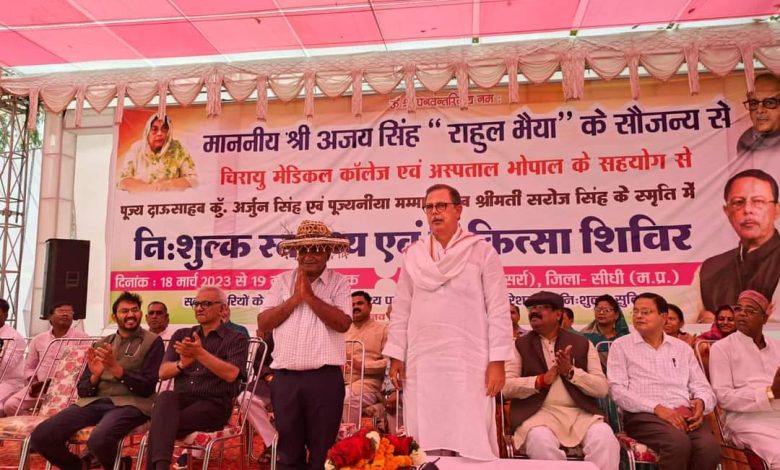 दाऊ कुंवर अर्जुन सिंह की स्मृति में सर्रा में आयोजित दो दिवसीय नि:शुल्क स्वास्थ्य शिविर के शुभारंभ अवसर पर पूर्व नेता प्रतिपक्ष अजय सिंह राहुल ने चिरायु हॉस्पिटल भोपाल के संचालक डॉ. गोयनका एवं उनकी पूरी टीम का स्वागत करते हुए कहा कि उपचार के क्षेत्र में उनके द्वारा काफी अच्छा कार्य किया जा रहा है। चुरहट के सर्रा में आयोजित हो रहे दो दिवसीय स्वास्थ्य शिविर से सबसे ज्यादा लाभ ग्रामीण क्षेत्रों के मरीजों को होगा। जिसका इंतजार उनके द्वारा काफी समय से किया जा रहा था। श्री सिंह ने कहा कि डॉ. गोयनका से उनके 25-30 साल से संबंध हैं। उनकी टीम द्वारा पूरे लगन के साथ मरीजों का उपचार किया जाता है। कोरोना काल के दौरान बहुत सारे लोग उपचार के लिए चिरायु हॉस्पिटल भोपाल पहुंचे थे। जिनका उपचार करनें में कोई कोर-कसर नहीं छोंड़ी गई। पूरे प्रदेश में सबसे ज्यादा कोरोना के मामलों का उपचार उनकी जानकारी में समुचित तरीके से चिरायु हॉस्पिटल भोपाल किया किया गया था। अच्छे उपचार के चलते ही लोगों को नया जीवन भी मिला। पूर्व नेता प्रतिपक्ष ने कहा कि सर्रा में हर वर्ष नि:स्वास्थ्य शिविर का आयोजन किया जाता है। शिविर के सिलसिले में कुछ लोग चिरायु हॉस्पिटल से तीन दिन एवं सात दिन पूर्व ही पहुंच गए थे। अब आगामी शिविरों में आग्रह है कि एक दिन पूर्व शाम तक पूरी टीम पहुंच जाए।